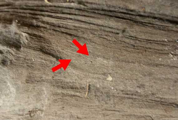 Im Foto deutlich zu erkennen(Pfeile) - die versteinerten Fußabdrücke der Ameisen